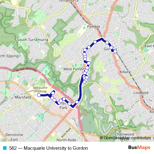 Bus 562 - Macquarie University to Gordon in Sydney: Stops & Timetable