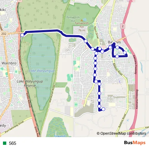 The first stop of the 565 bus route is Warnbro Stn Stand 1 and the last stop is Sixty Eight Rd After Smirk Rd. 565 is operational during everyday.
