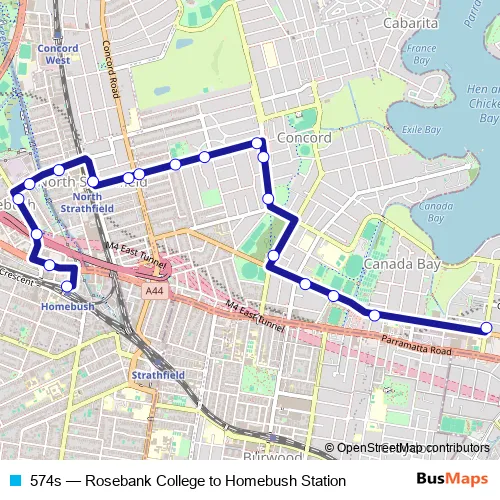Click here to view the nearest 574s - Rosebank College to Homebush Station bus stop.