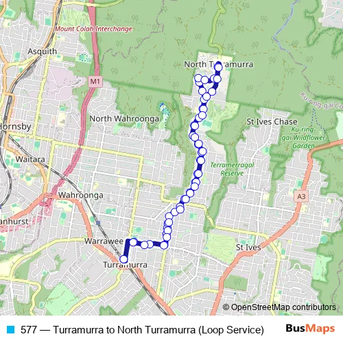 Bus 577 - Turramurra to North Turramurra (Loop Service): Full Schedule in Sydney