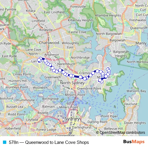 Click here to view the nearest 578n - Queenwood to Lane Cove Shops bus stop.