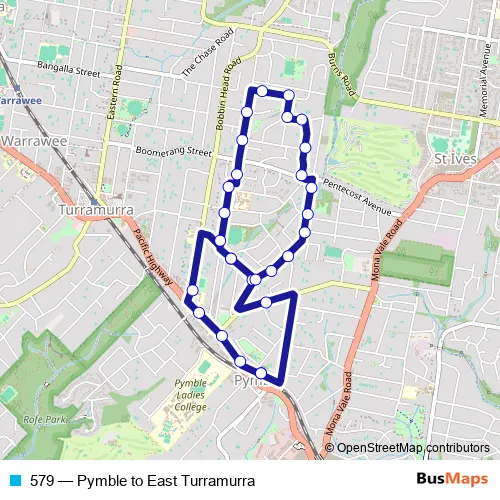 Bus 579 - Pymble to East Turramurra: Full Schedule in Pymble
