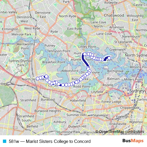 Bus 581w - Marist Sisters College to Concord: Full Schedule in Sydney
