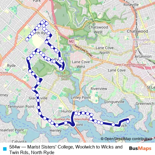 Click here to view the nearest 584w - Marist Sisters' College, Woolwich to Wicks and Twin Rds, North Ryde bus stop.