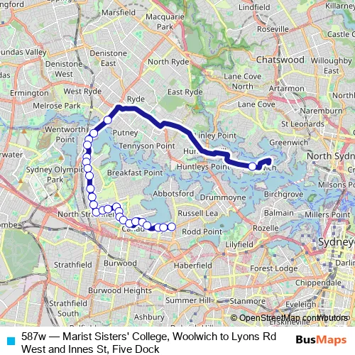 Click here to view the nearest 587w - Marist Sisters' College, Woolwich to Lyons Rd West and Innes St, Five Dock bus stop.