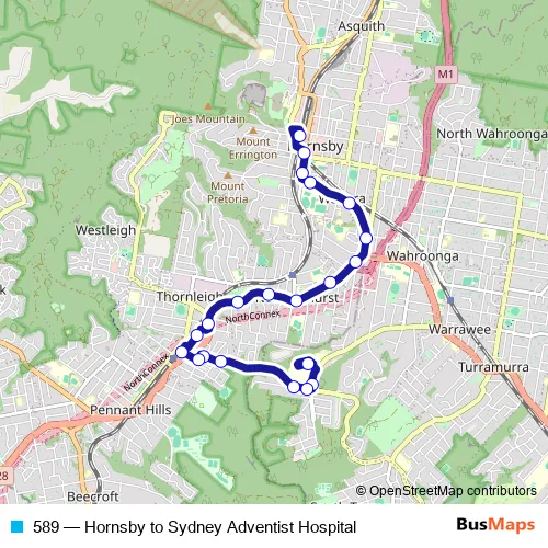 Bus 589 - Hornsby to Sydney Adventist Hospital: Full Schedule in Sydney