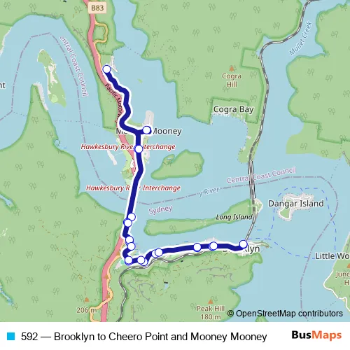 Bus 592 - Brooklyn to Cheero Point and Mooney Mooney in Sydney: Stops & Timetable