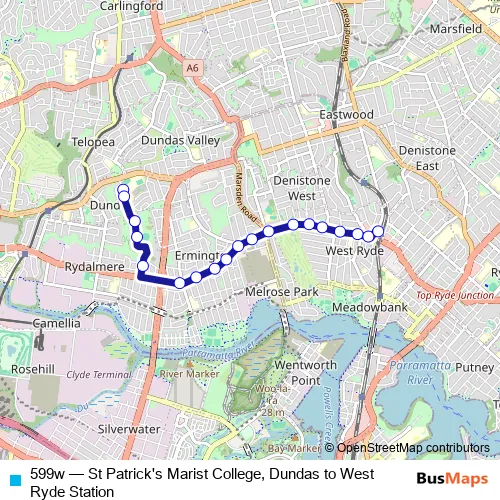 Bus 599w - St Patrick's Marist College, Dundas to West Ryde Station in Parramatta: Stops & Timetable