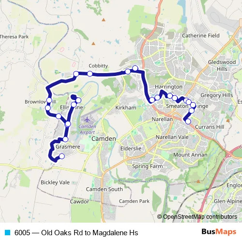 The first stop of the 6005 bus route is The Old Oaks Rd Opp Benwerrin Cres and the last stop is Magdalene Catholic College. 6005 (Old Oaks Rd to Magdalene Hs) is operational during on weekdays.