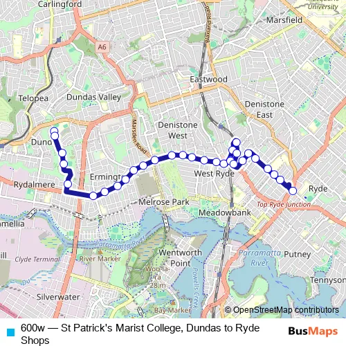 Bus 600w - St Patrick's Marist College, Dundas to Ryde Shops: Full Schedule in Parramatta