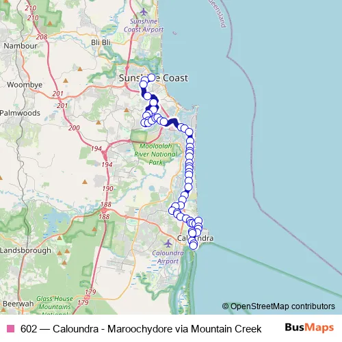 Bus 602 - Caloundra - Maroochydore via Mountain Creek Schedule in Sunshine Coast