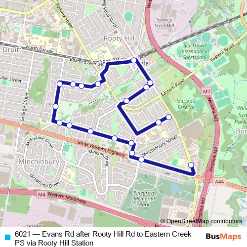 6021 Bus - Evans Rd after Rooty Hill Rd to Eastern Creek PS via Rooty Hill Station