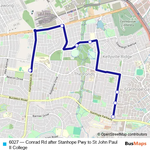 Bus 6027 - Conrad Rd after Stanhope Pwy to St John Paul II College Schedule in Parramatta