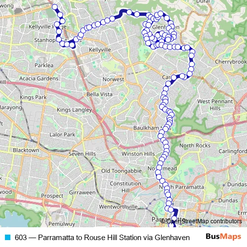 Bus 603 - Parramatta to Rouse Hill Station via Glenhaven in Parramatta: Stops & Timetable