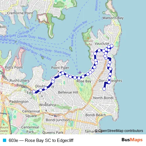 Click here to view the nearest 603e - Rose Bay SC to Edgecliff bus stop.