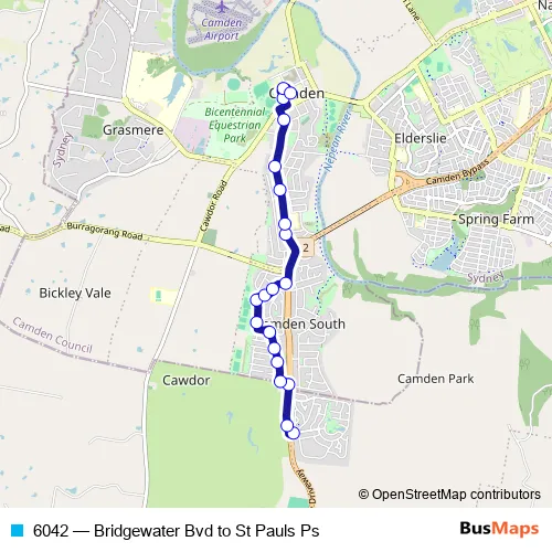 The first stop of the 6042 bus route is Bridgewater Bvd Before Remembrance Dr and the last stop is St Paul's Catholic Primary School, John St. 6042 (Bridgewater Bvd to St Pauls Ps) is operational during on weekdays.