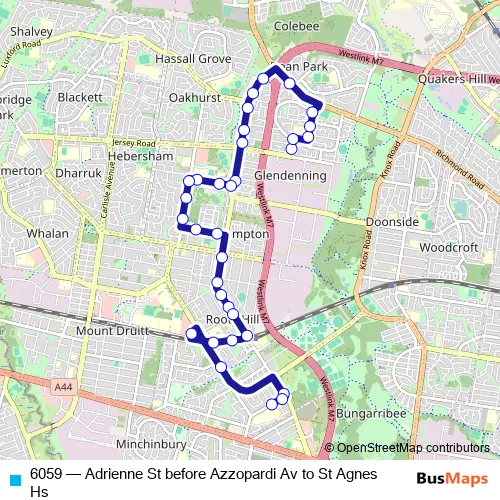 The first stop of the 6059 bus route is Adrienne St Before Azzopardi Av and the last stop is St Agnes Catholic High School, Evans Rd. 6059 (Adrienne St before Azzopardi Av to St Agnes Hs) is operational during on weekdays.