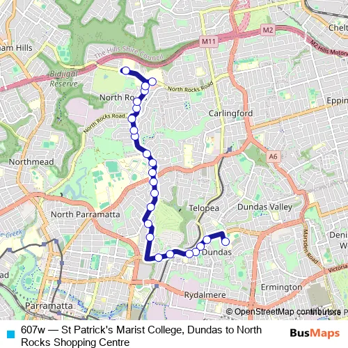 607w Bus - St Patrick's Marist College, Dundas to North Rocks Shopping Centre