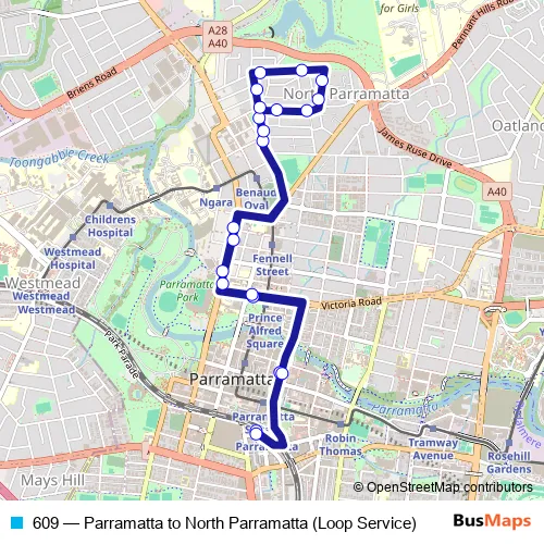 Click here to view the nearest 609 - Parramatta to North Parramatta (Loop Service) bus stop.