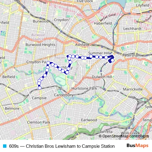 The first stop of the 609s bus route is Christian Brothers' High School, Denison Rd and the last stop is Campsie Station, Beamish St, Stand C. 609s (Christian Bros Lewisham to Campsie Station) is operational during on weekdays.