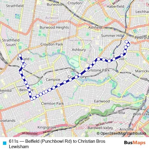 Bus 611s - Belfield (Punchbowl Rd) to Christian Bros Lewisham in Sydney: Stops & Timetable