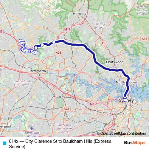 Click here to view the nearest 614x - City Clarence St to Baulkham Hills (Express Service) bus stop.