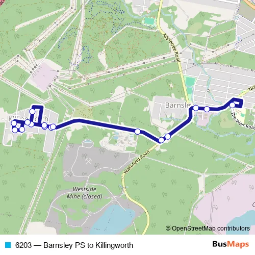 Click here to view the nearest 6203 - Barnsley PS to Killingworth bus stop.