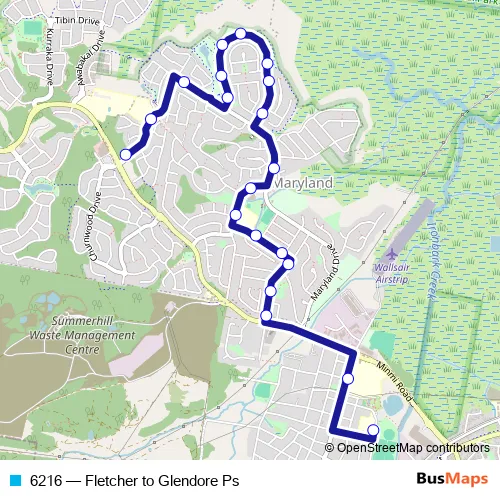 Bus 6216 - Fletcher to Glendore Ps in Newcastle: Stops & Timetable