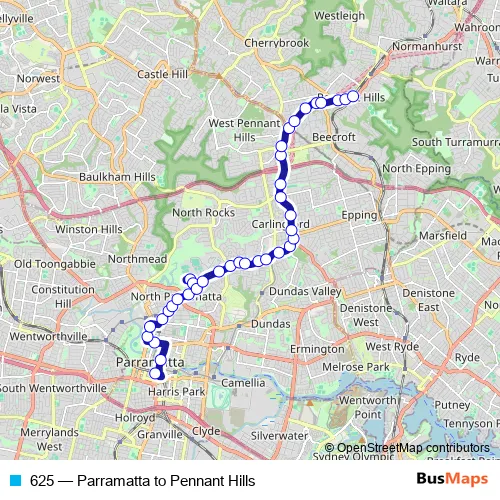 Click here to view the nearest 625 - Parramatta to Pennant Hills bus stop.
