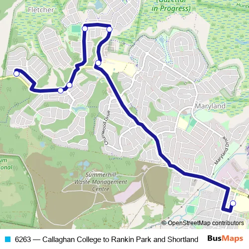 The first stop of the 6263 bus route is Callaghan College Wallsend Campus, Macquarie St and the last stop is Brookfield Av Before Minmi Rd. 6263 (Callaghan College to Rankin Park and Shortland) is operational during on weekdays.