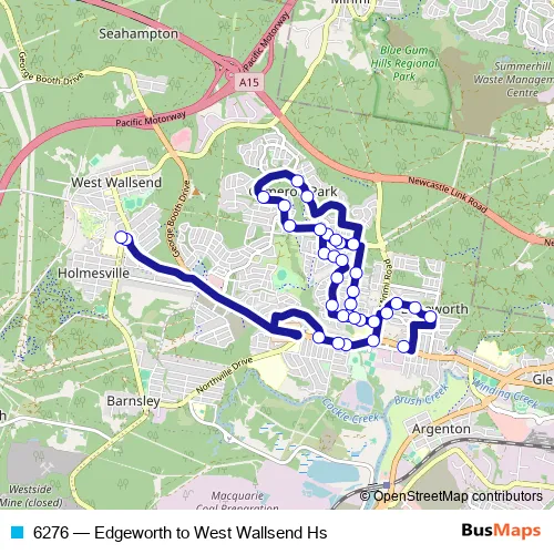 Click here to view the nearest 6276 - Edgeworth to West Wallsend Hs bus stop.