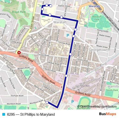 The first stop of the 6295 bus route is St Phillip's College, Station St and the last stop is Lambton High School, Young Rd. 6295 (St Phillips to Maryland) is operational during on weekdays.