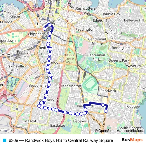 Click here to view the nearest 630e - Randwick Boys HS to Central Railway Square bus stop.