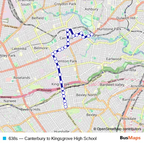 Bus 638s - Canterbury to Kingsgrove High School in Sydney: Stops & Timetable