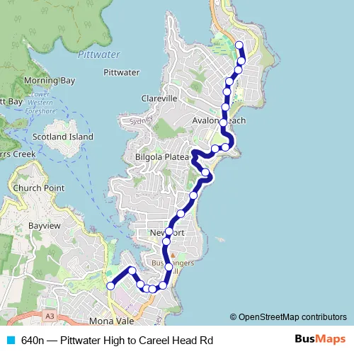 Bus 640n - Pittwater High to Careel Head Rd: Full Schedule in Clareville