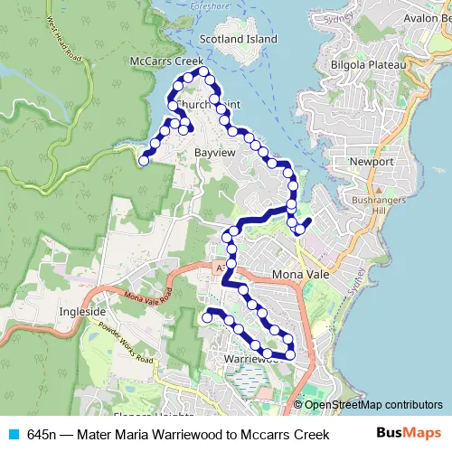 Bus 645n - Mater Maria Warriewood to Mccarrs Creek: Full Schedule in Mona Vale