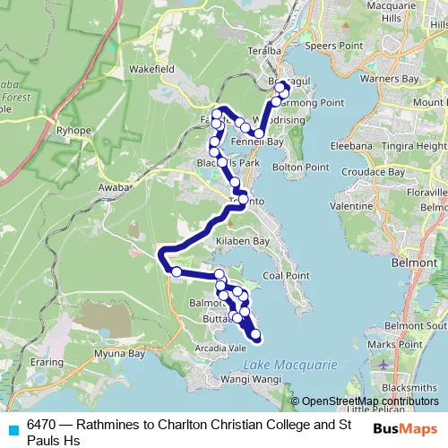 Bus 6470 - Rathmines to Charlton Christian College and St Pauls Hs in Newcastle: Stops & Timetable