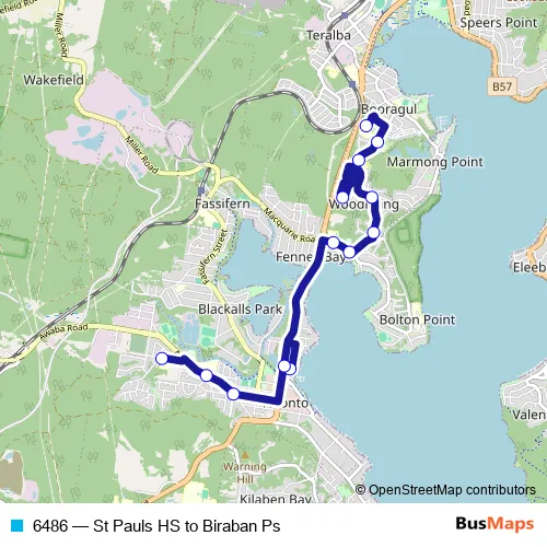 The first stop of the 6486 bus route is St Pauls High School and the last stop is Biraban Public School, Beckley St. 6486 (St Pauls HS to Biraban Ps) is operational during on weekdays.