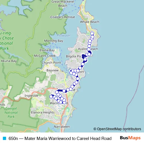 Bus 650n - Mater Maria Warriewood to Careel Head Road Schedule in Mona Vale