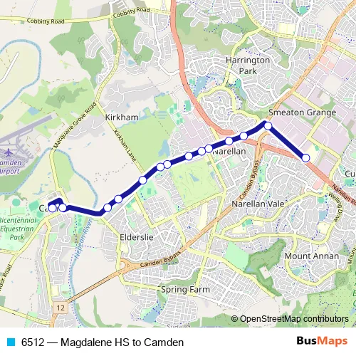 The first stop of the 6512 bus route is Magdalene Catholic College and the last stop is St Paul's Catholic Primary School, John St. 6512 (Magdalene HS to Camden) is operational during on weekdays.
