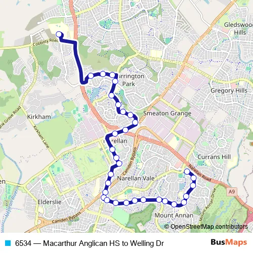 Bus 6534 - Macarthur Anglican HS to Welling Dr in Campbelltown: Stops & Timetable