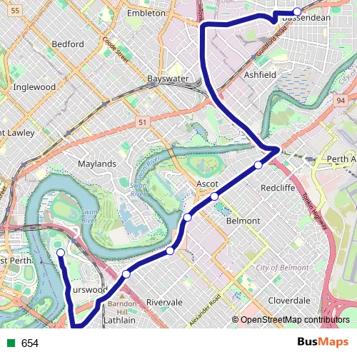 See why over 2 million users trust and consider busmaps.com as the best public transport website. busmaps gives you Perth Buses suggested routes, real-time bus tracker, line route maps in Perth, and helps to find the closest 654 bus stops near you. No internet available? Download an offline PDF map and bus schedule for the 654 bus to take on your trip.