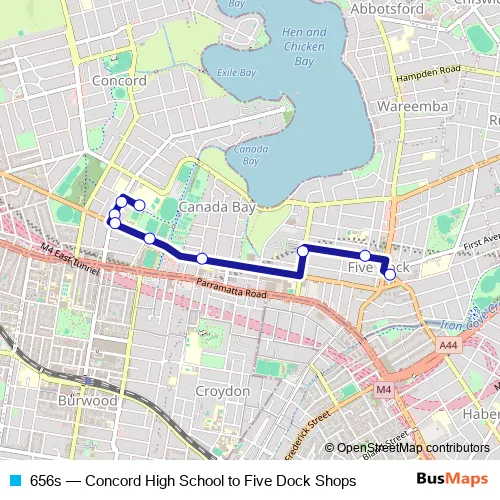 Bus 656s - Concord High School to Five Dock Shops in Sydney: Stops & Timetable