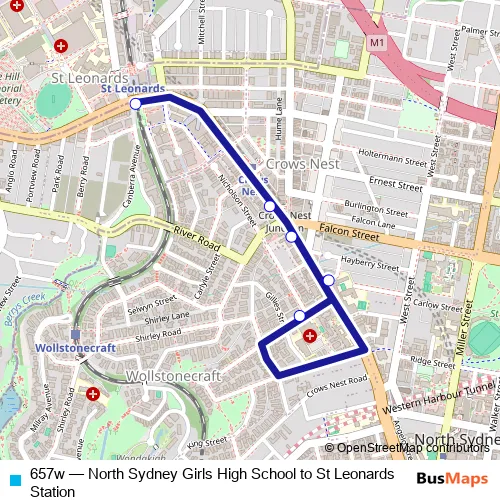 Bus 657w - North Sydney Girls High School to St Leonards Station: Full Schedule in Sydney
