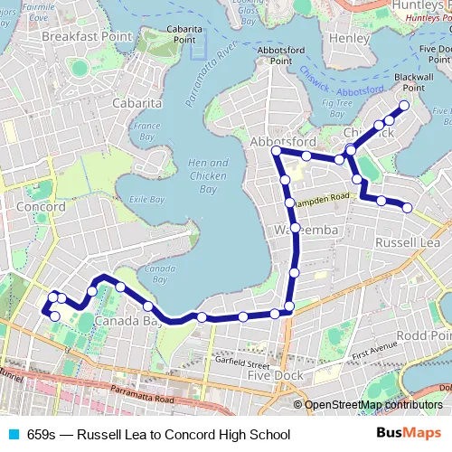 Bus 659s - Russell Lea to Concord High School: Full Schedule in Sydney
