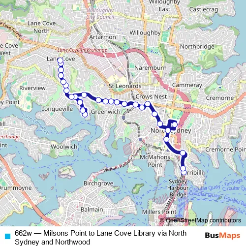 Click here to view the nearest 662w - Milsons Point to Lane Cove Library via North Sydney and Northwood bus stop.