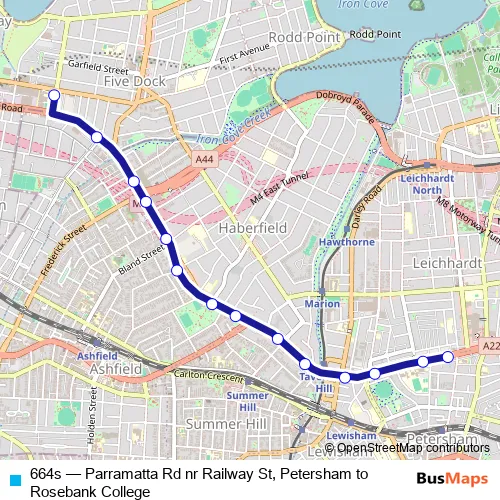 Click here to view the nearest 664s - Parramatta Rd nr Railway St, Petersham to Rosebank College bus stop.