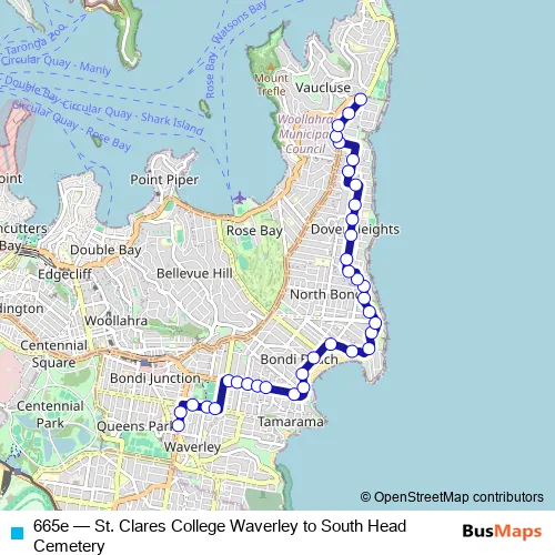 Click here to view the nearest 665e - St. Clares College Waverley to South Head Cemetery bus stop.