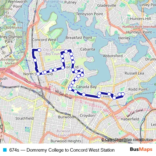 Click here to view the nearest 674s - Domremy College to Concord West Station bus stop.