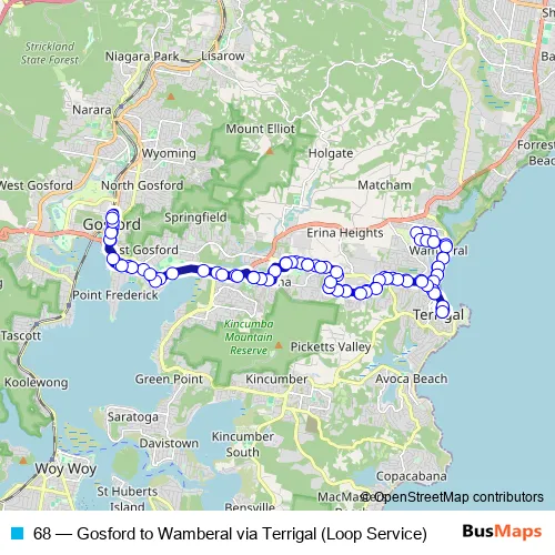 Bus 68 - Gosford to Wamberal via Terrigal (Loop Service): Full Schedule in Central Coast